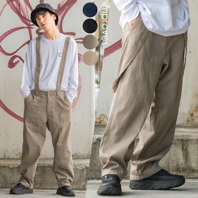 ワイドパンツ メンズ サスペンダー付き ツイル ベイカーパンツ テーパード ゆったり 大きいサイズ ビッグシルエット 無地 黒 青 Improves Improves インプローブス 通販 Yahoo ショッピング